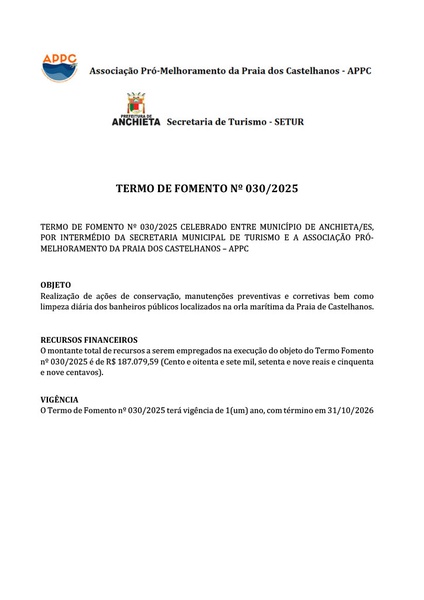 O presente termo abrange ações de manutenção, prevenção e corretivas, assim como, a limpeza diária dos banheiros públicos localizados na Orla de Castelhanos.